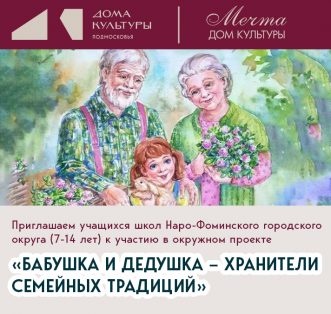 Приглашаем учащихся школ Наро-Фоминского городского округа (7-14 лет) к участию в окружном проекте «БАБУШКА И ДЕДУШКА - ХРАНИТЕЛИ СЕМЕЙНЫХ ТРАДИЦИЙ» ЧТОБЫ ПРИНЯТЬ УЧАСТИЕ: Запишите видео-визитку с бабушкой / дедушкой. Участникам с лучшими работ [...]