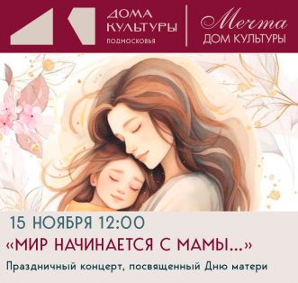 15 ноября в ДК «Мечта» состоится концерт «Мир начинается с Мамы», посвященный Дню матери! День матери — праздник, который трогает до глубины души. И мы готовим для вас особенный вечер: душевные музыкальные номера; тёплые слова в адрес мам; атмосфера [...]
