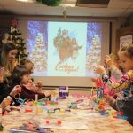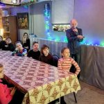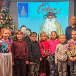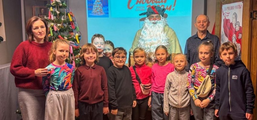 Ребята пели песни, читали стихи, отгадывали загадки и получили от зимнего волшебника необычные сладкие подарки. Потом потанцевали на мини-дискотеке и побывали в зале русского быта, где увидели довоенную елочку со старинными игрушками и русскую печь с ухватом и хлебной лопатой.