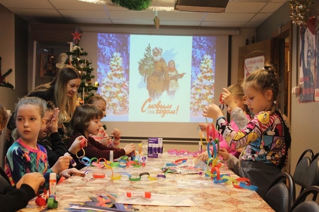 Ребята посмотрели кадры военной хроники, узнали о драматических событиях, связанных с Великой Отечественной войной и о том, как украшали новогодние елки в то суровое время.