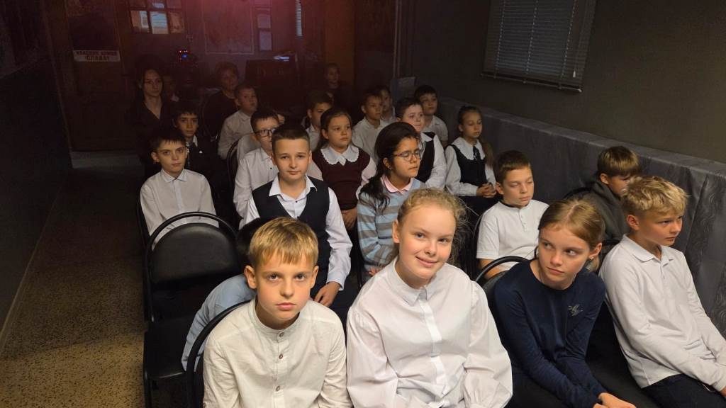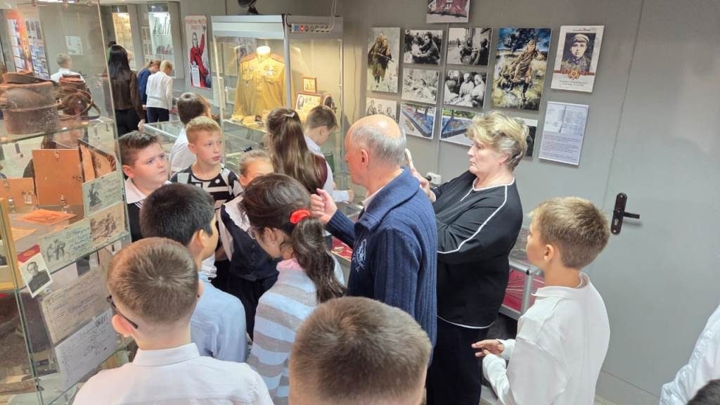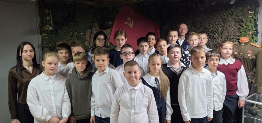 После урока ребята осмотрели экспонаты выставочного комплекса Зала и сделали общую фотографию на фоне фронтовой землянки.