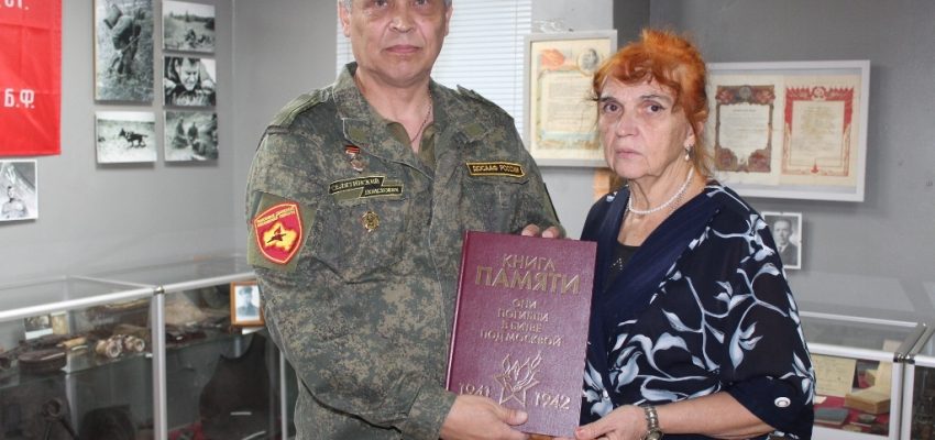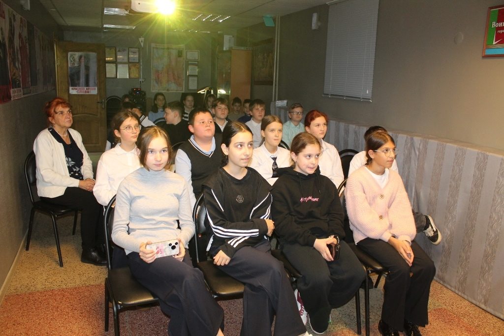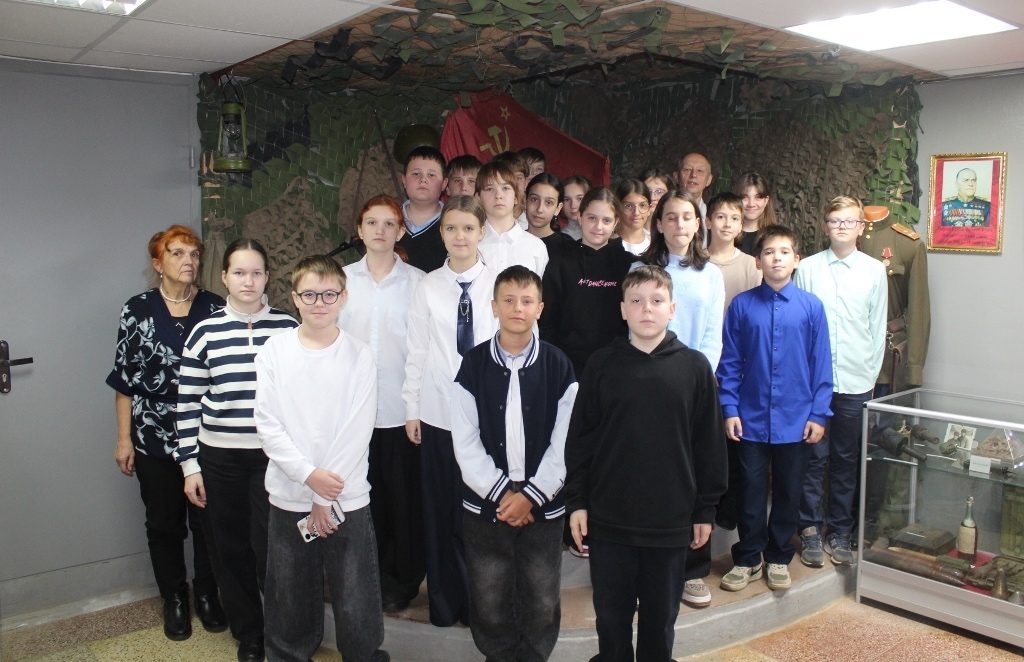 После урока ребята сделали общую фотографию на фоне фронтовой землянки, а также получили памятный подарок от Зала – книгу о Великой Отечественной войне.