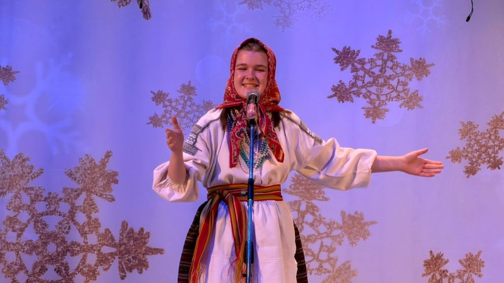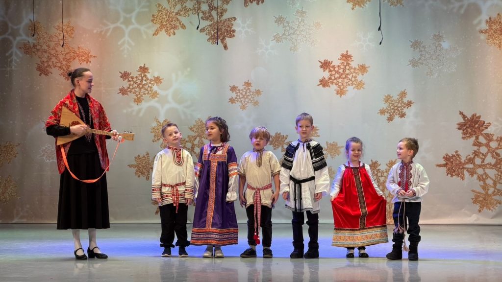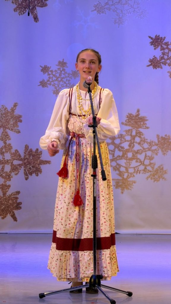 Программа «Зимней Вечёрки» была тщательно продумана и разнообразна, охватывая различные грани русской народной музыкальной культуры. Концерт открылся проникновенными духовными стихами и песнопениями, которые создали атмосферу умиротворения и благодати. Артисты младшей и средней групп ансамбля «Вечёрка» продемонстрировали высокий уровень подготовки и артистизма. Их звонкие голоса и задорные выступления вызвали бурю положительных эмоций у зрителей. Основная часть программы была посвящена богатому наследию русских народных песен. Ансамбль представил как шуточные и плясовые композиции, под которые невозможно было усидеть на месте, так и лирические песни, заставляющие задуматься и почувствовать глубину человеческих эмоций. Особый интерес вызвала современная обработка народной песни. Коллектив сумел сохранить аутентичность мелодии, придав ей новое свежее звучание, которое пришлось по вкусу как ценителям классики, так и более молодой аудитории. Эти номера продемонстрировали творческий подход и способность ансамбля идти в ногу со временем, не теряя при этом своих корней.