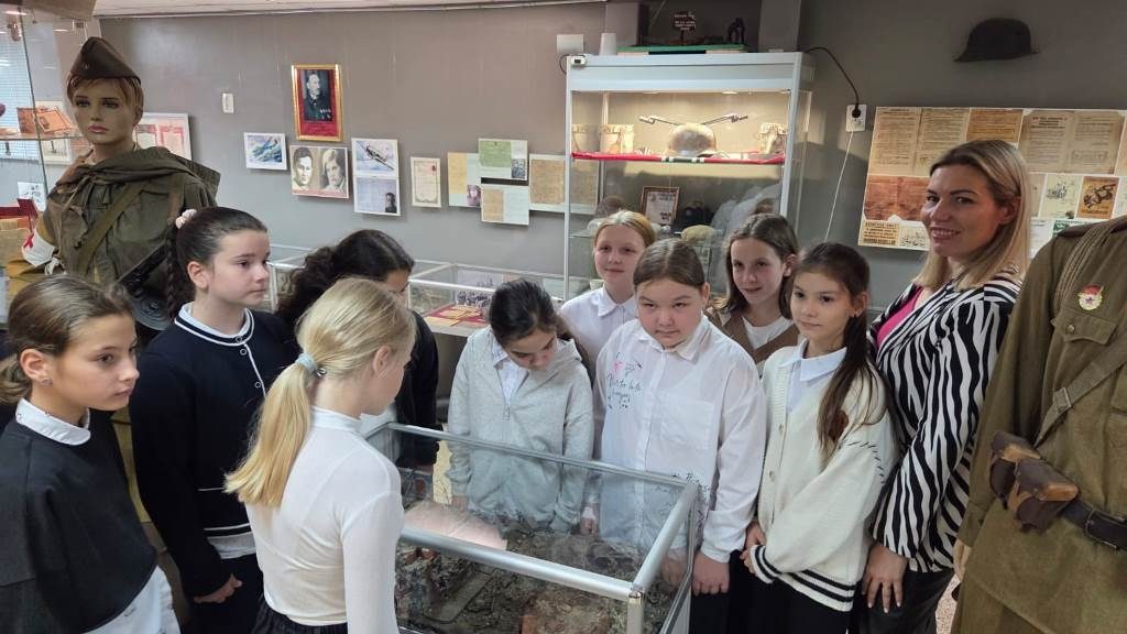 Перед началом беседы ребята просмотрели видеоролик антитеррористической направленности. А после урока осмотрели экспонаты в выставочном комплексе, репродукции картин советских художников «Этюды войны» и выставку рисунков учеников детской школы искусств «Элегия», посвященную 80-летию Победы советского народа в Великой Отечественной войне в галерее Зала. Не обошли вниманием и размещенный в фойе стенд, посвященный вопросам гражданской защиты.