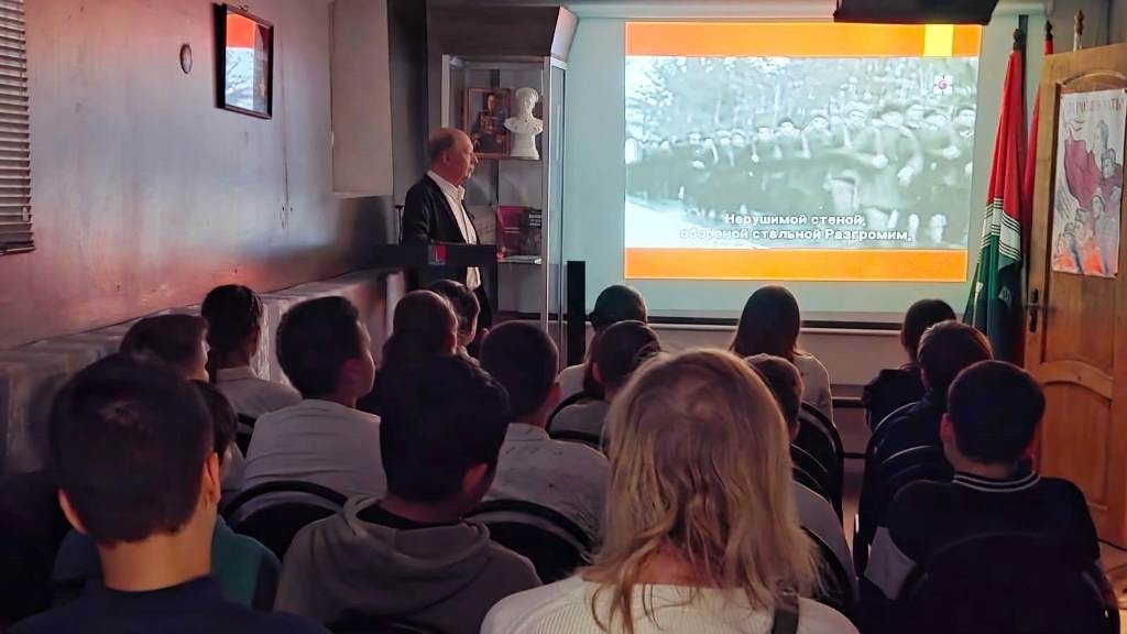 Урок начался с рассказа традициях проведения военных парадов в России в разные исторические эпохи. Далее шли кадры начала Великой Отечественной войны, обороны Москвы и исторического парада на Красной площади, погрузившие школьников в атмосферу героической борьбы советского народа с фашистскими захватчиками в конце 1941 года.