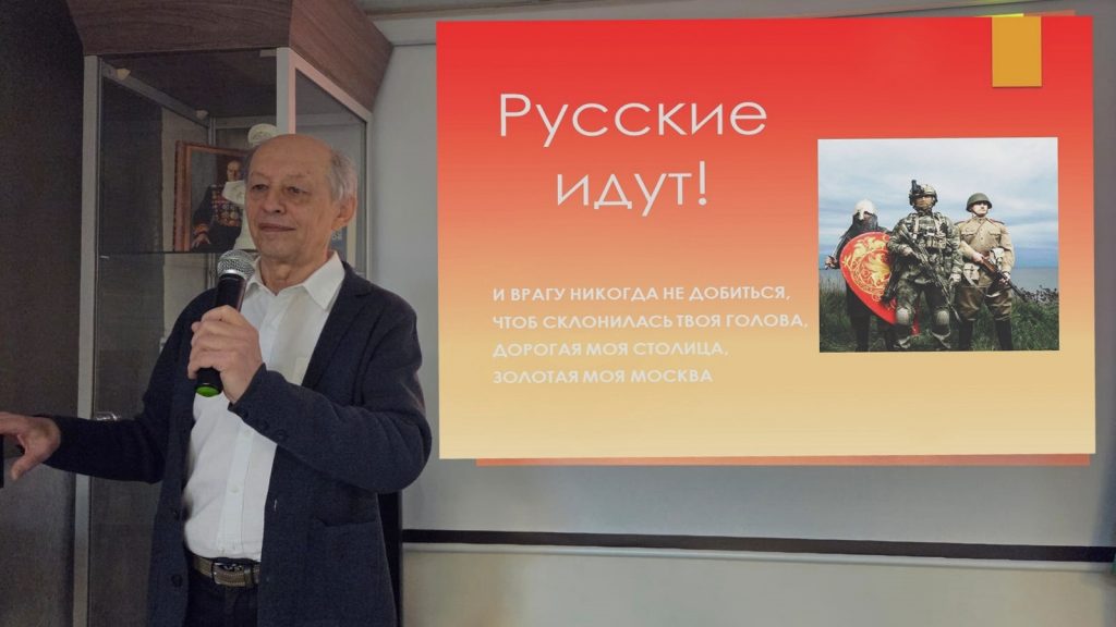 Прозвучали фрагмент речи Верховного главнокомандующего СССР И.В. Сталина, произнесенной в момент парада с трибуны мавзолея, легендарный «Марш защитников Москвы» и Гимн Москвы, написанный весной 1942 года.