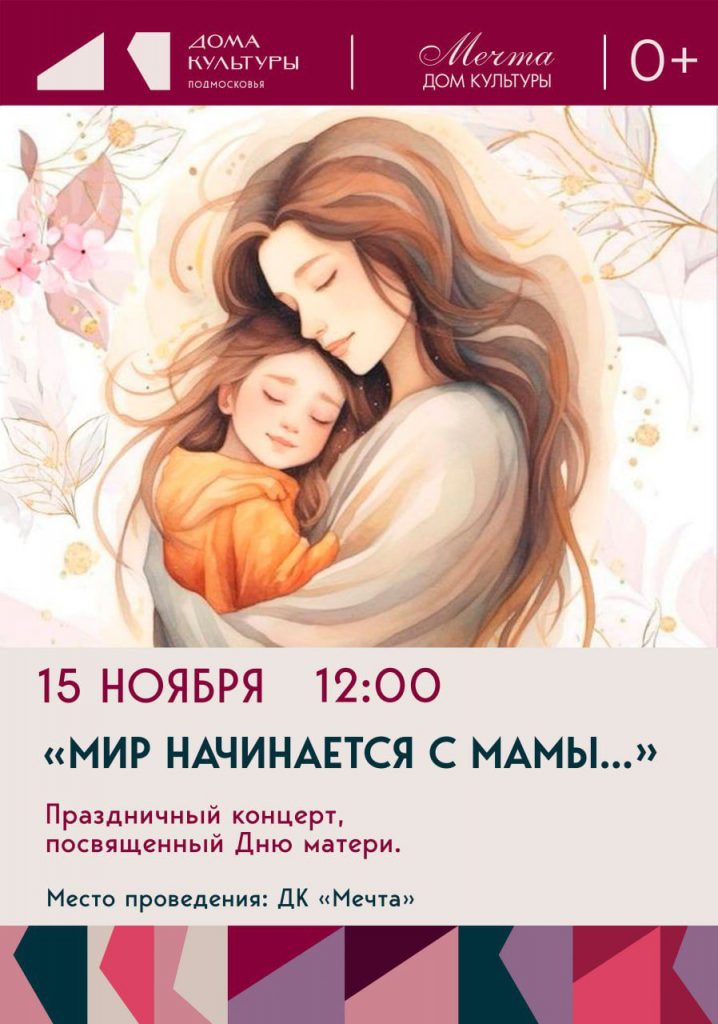 Давайте вместе сделаем этот день незабываемым для наших мам. Ждём вас 15 ноября в ДК «Мечта»!