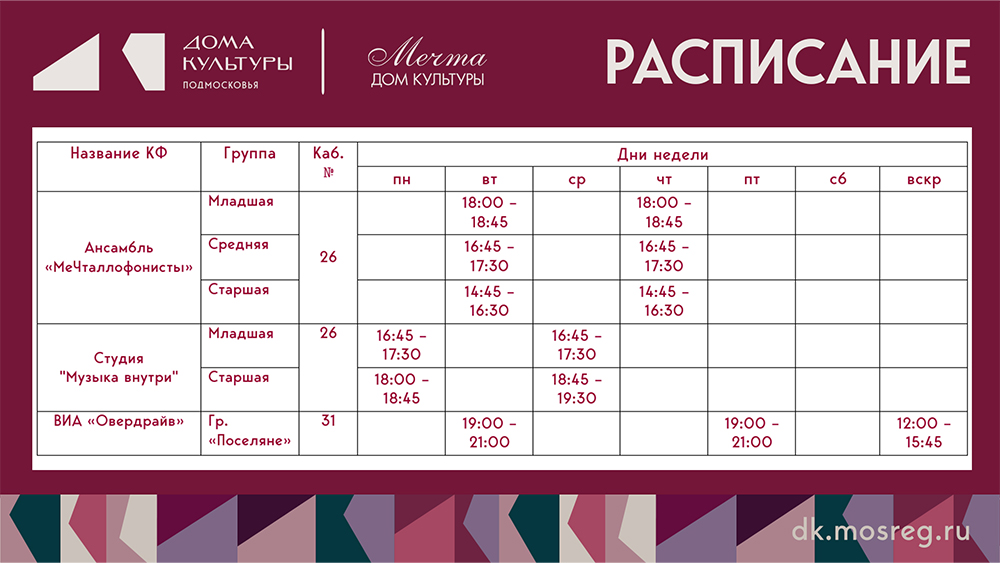 С возрастом расширяется арсенал инструментов (к металлофону прибавляются мелодики, ксилофоны, калимбы, boomwhakers и различные шумовые).