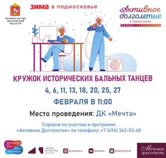 Друзья! В Доме культуры "Мечта" в Феврале будут проходить кружок исторических бальных танцев в рамках Губернаторской программы "Активное долголетие"!
