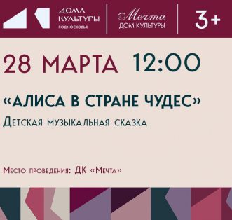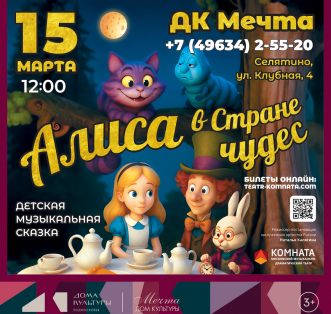 Дорогие друзья! Приглашаем вас в волшебную сказку, где реальность переплетается с фантазией! Что вас ждёт: -захватывающая история Алисы в удивительном мире; -любимые герои: Белый кролик, Чеширский кот, Безумный шляпник и другие; -весёлые песни и задо [...]