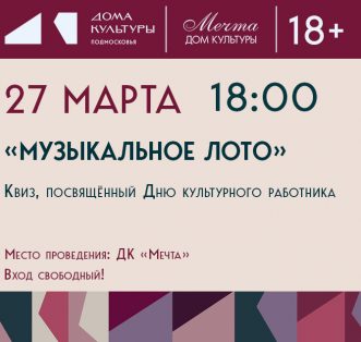 Сыграем в «Музыкальное лото»? Угадай мелодию и отпразднуй День работника культуры! 🎉 Друзья! Приглашаем вас на яркий, шумный и очень музыкальный вечер! В преддверии профессионального праздника — Дня работника культуры — Дом Культуры «Мечта» з [...]