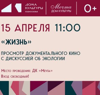 Друзья! Тема экологии сегодня актуальна как никогда. 🌳 ДК "Мечта" приглашает вас 15 апреля в 11.00 на просмотр документального фильма «Жизнь», а после него обсудим увиденное и поговорим о том, что каждый из нас может сделать для нашей планеты [...]