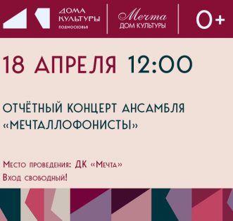 Друзья! Приглашаем вас на отчётный концерт ансамбля "Мечталлофонисты"! Коллектив представит итоги творческого года и покажет зрителям свои лучшие номера. ✅Дата: 18 апреля ✅Время: 12:00 Ждём вас, чтобы вместе окунуться в мир звуков и вдохновения! Вход [...]