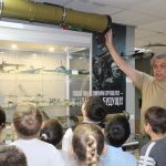 После беседы ребята осмотрели экспонаты в зале военной археологии, где не только увидели модели «Катюши» различного масштаба, но и смогли прикоснуться к обломкам разорвавшегося реактивного снаряда, найденного поисковиками на местах боев недалеко от Таширово.