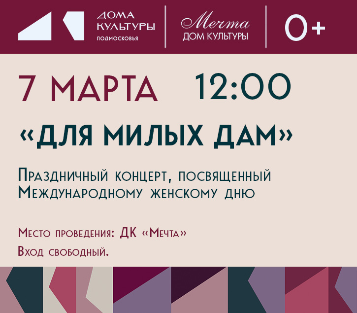 Мы уверены, что праздничный концерт «Для милых дам» станет ярким и запоминающимся событием в преддверии 8 Марта.