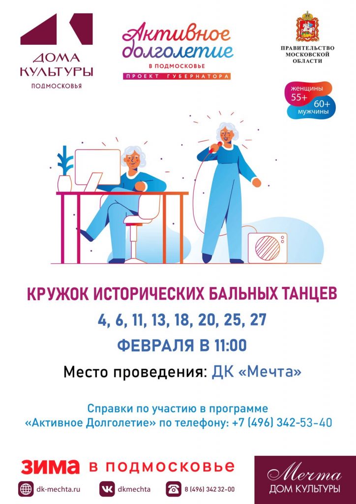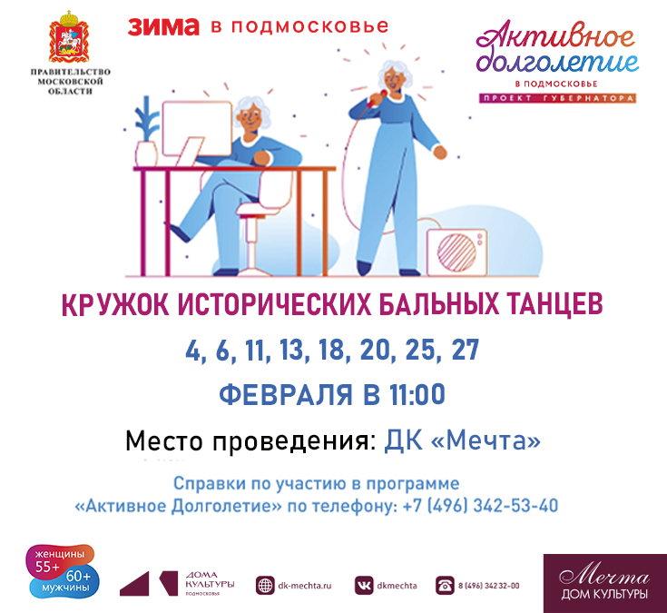 Друзья! В Доме культуры «Мечта» в Феврале будут проходить кружок исторических бальных танцев в рамках Губернаторской программы «Активное долголетие»!
