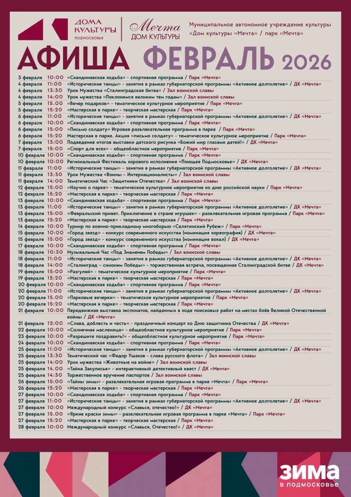Друзья, Знакомьтесь с расписанием мероприятий на месяц Февраль!