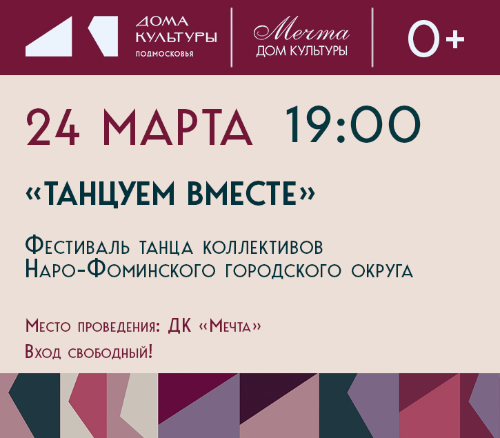 Хотите провести вечер в атмосфере красоты, энергии и вдохновения? Тогда вам к нам! Приглашаем вас на Фестиваль танца, где свои лучшие номера представят коллективы Наро-Фоминского городского округа. Это будет настоящий праздник для глаз и души!